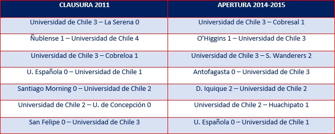 Actualmente, Universidad de Chile es el mejor equipo del Campeonato Nacional. Es el exclusivo líder y el único invicto, sus números hacen recordar al equipo que salió campeón en el Clausura del 2011.