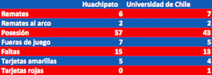 En los números no se notó la expulsión. La ficha del partido denota superioridad acerera únicamente en la posesión de balón. El resto, todo parejo. La “U” supo administrar el juego pese a que jugó un tiempo entero con 10 jugadores. Mira acá los números.