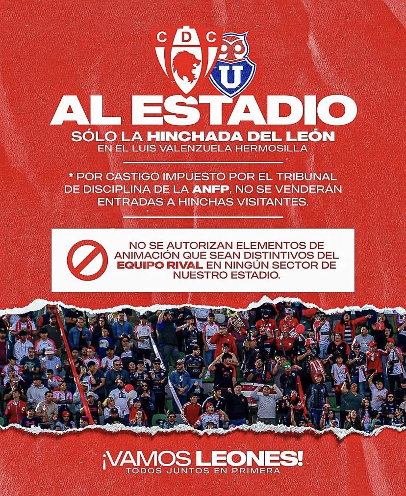 Esto ha levantado las alertas del club nortino, cuyos encargados harán efectivas diferentes medidas para evitar la presencia masiva de hinchas del Romántico Viajero, tales como la prohibición de ingreso con ropa alusiva a Universidad de Chile y controles de identidad en las inmediaciones del estadio, para acortar las posibilidades de reunión entre hinchas azules.