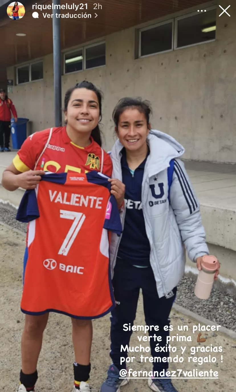 Además, hubo oportunidad para los reencuentros, ya que la actual delantera hispana Verónica Riquelme, quien estuvo el año 2022 junto a la U, fue recibida por sus excompañeras y se llevó una camiseta recuerdo de la paraguaya Rebeca Fernández, acompañada de una postal por redes sociales.