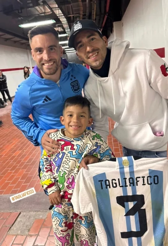 El campeón del Mundo recibió al goleador azul para conversar y entregarle un significativo regalo. Se trata de la camiseta que utilizó en el duelo contra la selección paraguaya, la cual fue recibida con mucha alegría por el jugador azul. Finalmente, Tagliafico y Fernández posaron para rememorar este encuentro.