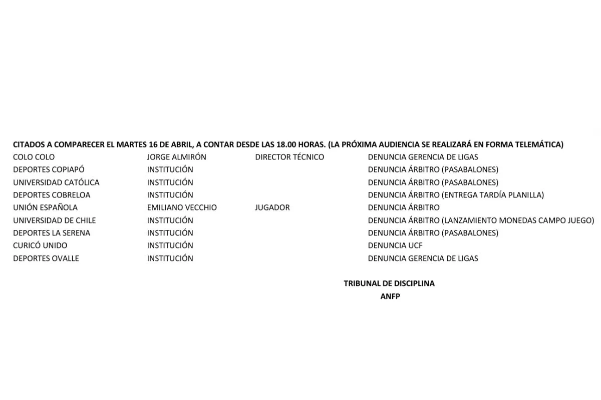 Por lo mismo, según la resolución entregada por el ente rector del fútbol chileno, el Romántico Viajero deberá asistir de manera telemática a la sesión del martes 16 de abril para aclarar la situación.