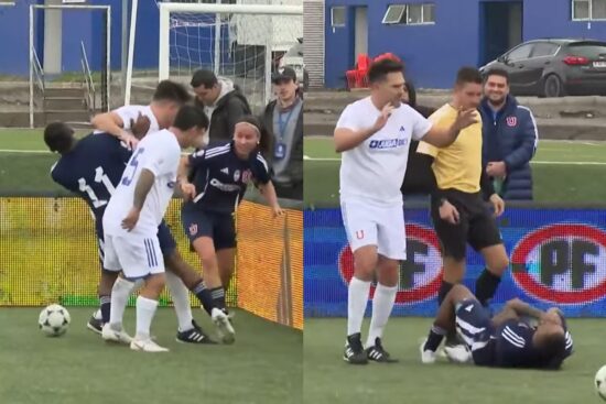No obstante, la aventura duró poco tiempo. Cuando el dirigido de la profe Isa buscaba su triplete, Rafael Olarra lo frenó en seco con un fuerte codazo en su cara. En un balón dividido, el otrora central pasó a llevar al coautor de Ultra Solo, quien quedó tirado en el piso.