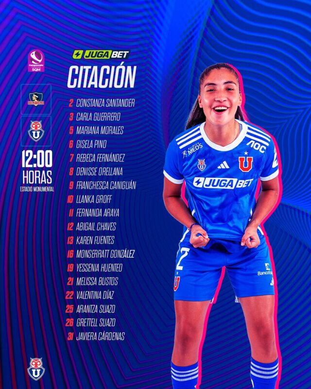La Jefa se perdió el último cotejo ante Coquimbo por una lesión muscular en sus cuádriceps, pero la recuperación fue satisfactoria y podrá decir presente contra Colo-Colo. Por otro lado, Rebecrack vuelve a ser considerada después de varios encuentros ausente por una lesión y problemas de índole personal.