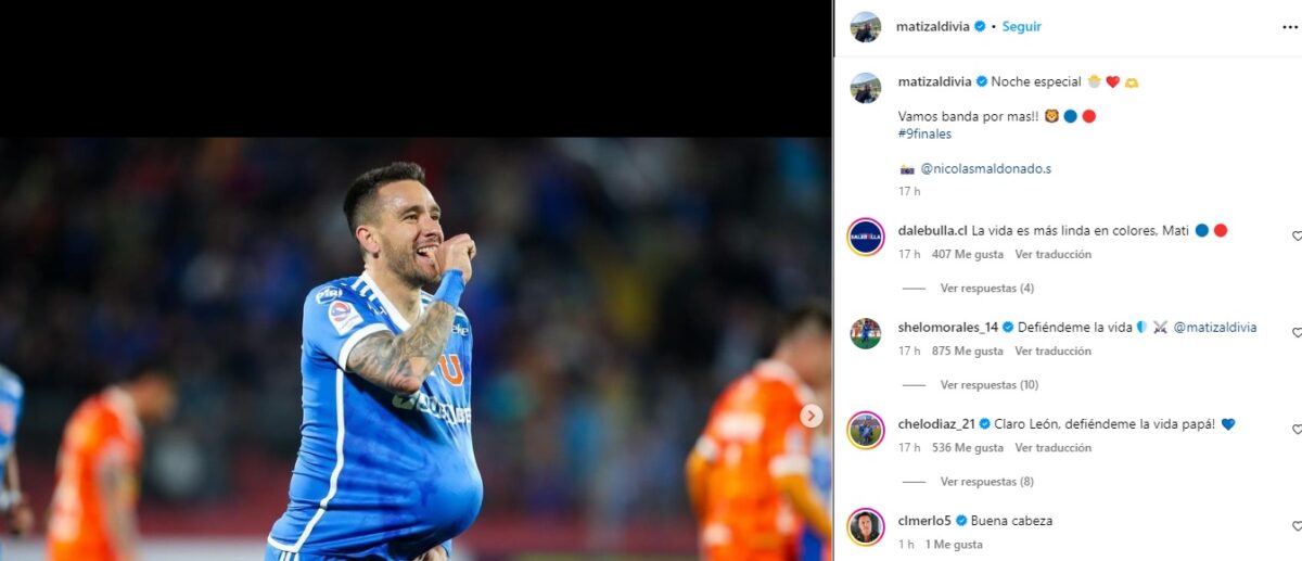 Uno de los protagonistas en el abultado marcador a favor de los azules, fue el defensor Matías Zaldivia, quien anotó su primer gol en lo que va del torneo. De hecho, el zaguero de 33 años compartió un especial mensaje en sus redes sociales, donde incluso reaccionaron algunos compañeros del plantel.