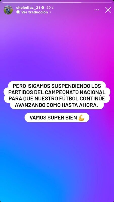 “Pero sigamos suspendiendo los partidos del Campeonato Nacional para que nuestro fútbol continúe avanzando como hasta ahora. Vamos súper bien”, fue el escrito de Marcelo Díaz quien jugó su último partido por La Roja fue en el 2017.
