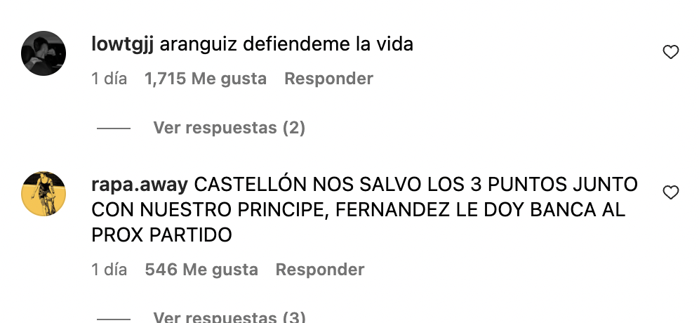 “¿Jugó Castellón hoy? Yo vi a Neuer”, “Charles era el único con ganas de jugar”, “Si no fuera por Aránguiz esto lo perdíamos”, “Castellón nos salvo los 3 puntos junto con nuestro Príncipe” o “Es para admirar lo que juega Charles”, fueron algunas de las reacciones que compartieron los fanáticos del Romántico Viajero por la gran actuación de ambos futbolistas de la U.